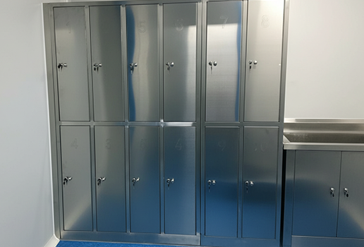 华巨升不锈钢实验室衣柜鞋柜柜体采用1.0mm优质304不锈钢板,经激光数控下料、折边成型及气体保护焊精密焊接,整体结构稳固美观。柜门配备三节静音滑轨、不锈钢合页及可调节活动层板,使用便捷、承重力强。表面光滑平整,耐腐蚀、防锈易清洁,专为医疗、生物、制药及无尘实验室设计,用于人员衣物和鞋品的安全、洁净分类存放,确保实验环境整洁与规范。